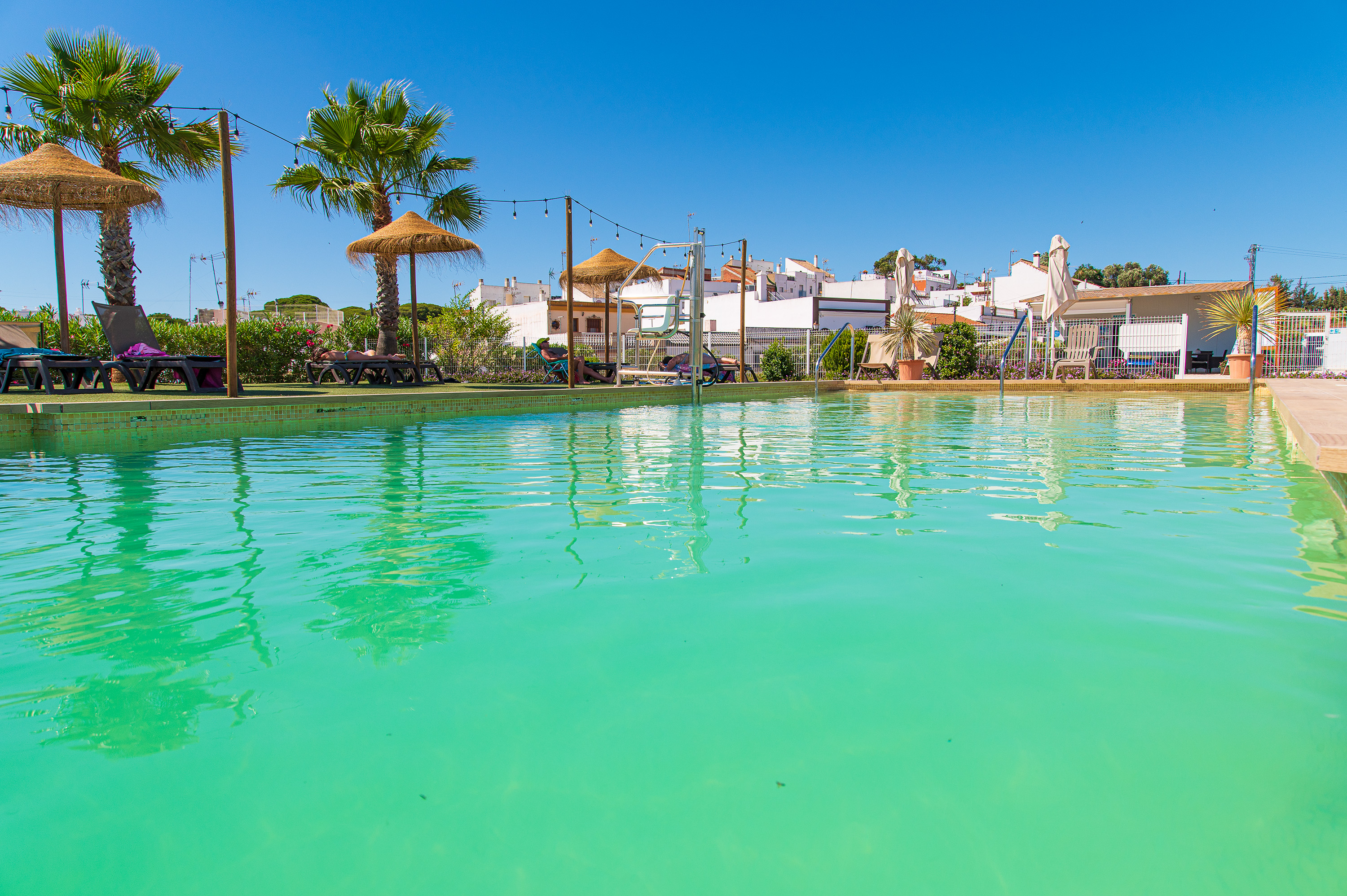 Onze percelen zijn geschikt voor voertuigen van alle afmetingen, vlak, met Wi-Fi, 10A of 16A elektriciteit, sommige met water en afvoer... en uitzicht op het natuurreservaat. We hebben een zwembad met een solariumgedeelte met parasols en ligstoelen. Bij de receptie vindt u dagelijks vers brood en gebak, naast een kopje koffie of frisdrank op ons terras. Onze faciliteiten worden aangevuld met wasfaciliteiten, toiletten, douches en een grote serviceruimte voor campers. Voor de petanqueliefhebbers hebben wij een goede baan waar je met reisgenoten kunt spelen. Excursies en rondleidingen vertrekken vanaf onze faciliteiten die u bij aankomst kunt boeken. Je kunt er komen door naar Isla Cristina te lopen en met de fiets, langs de Greenway, naar Ayamonte of Islantilla.
