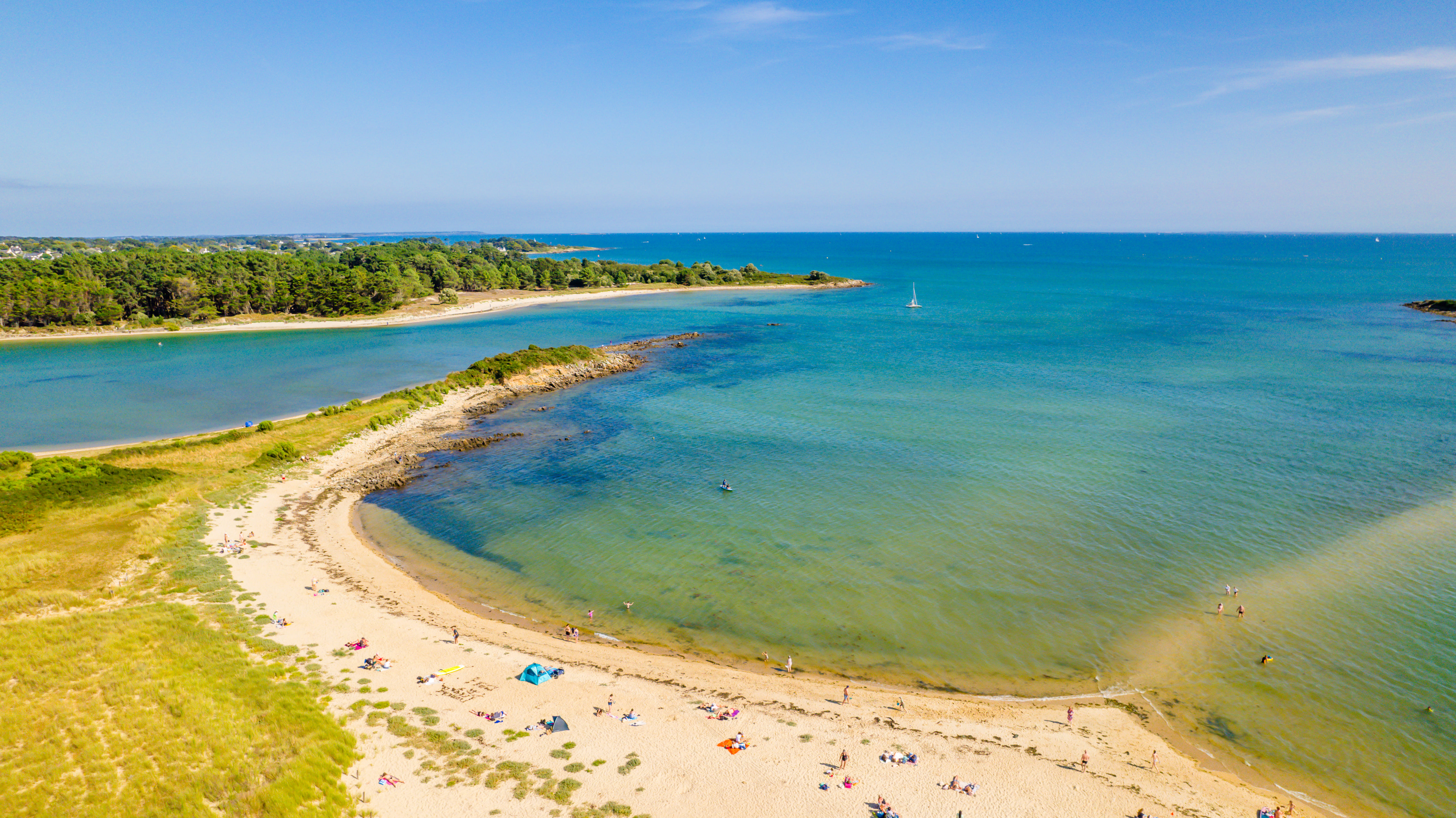 Leave the expressway and take the D28 road following CRAC'H - LA TRINITE SUR MER. Go via CRAC'H, then drive to LA TRINITE SUR MER by the D781 road. Magnificent view of the marina crossing the Kerisper's bridge. For 2 kms carry on the D781 road towards CARNAC. The campsite is located on your right on the edge of LA TRINITE SUR MER.