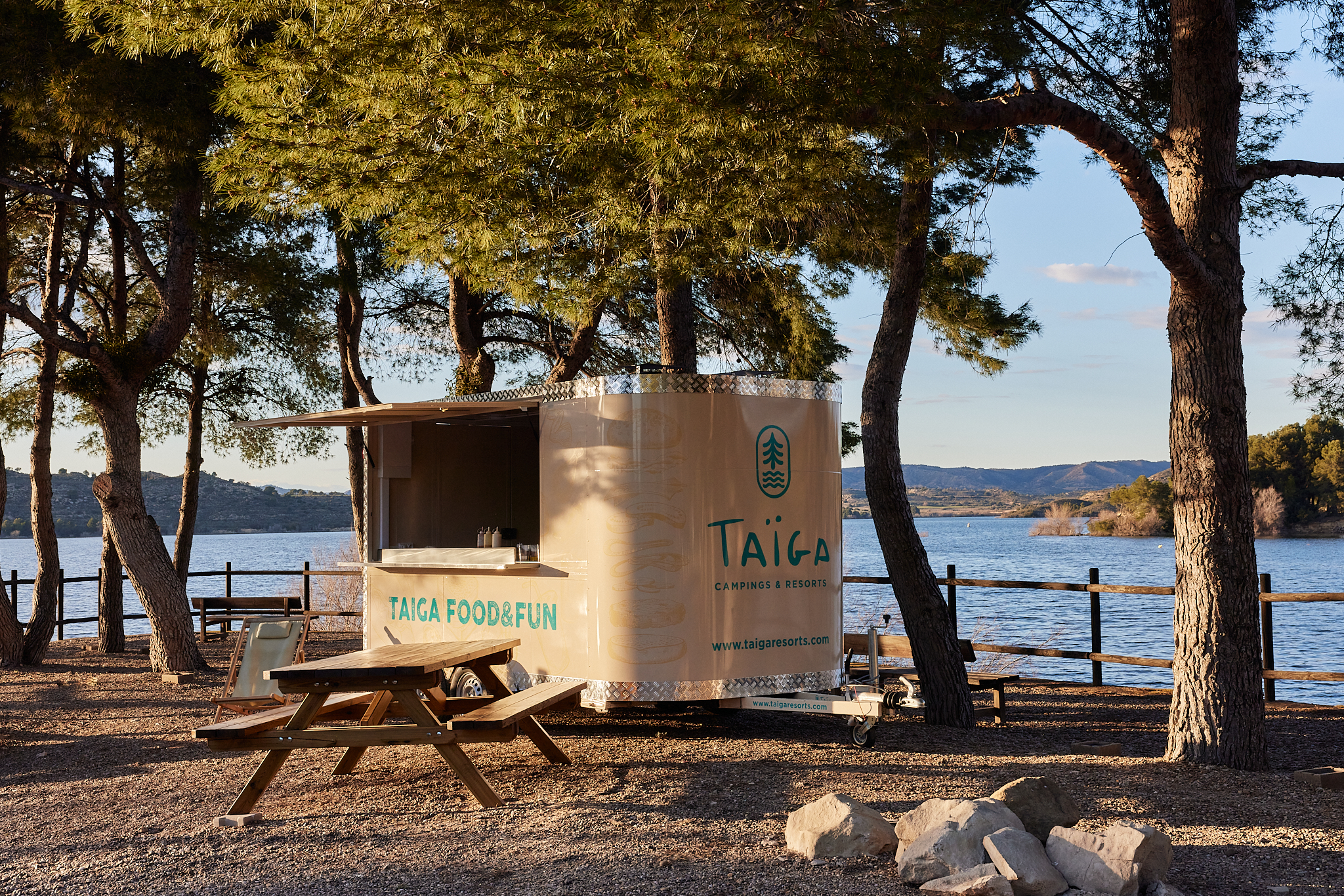 Alle kampeermodaliteiten van kleine tenten tot grote campers hebben hun plaats op Taiga Lake Caspe. De camping biedt tevens de mogelijkheid om een uitstekende, nieuw gebouwde bungalow te huren. Dankzij de bevoorrechte ligging en de kleine haven, die op de camping ligt, is het aanbod aan vrijetijdsactiviteiten breed en uitnodigend. Zeilen of windsurfen, waterskiën of kajakken, fietsen of boogschieten, vissen of avontuursporten: alles is mogelijk op Taiga Lake Caspe, maar bovenal kunt u hier van de natuur als nergens anders genieten.