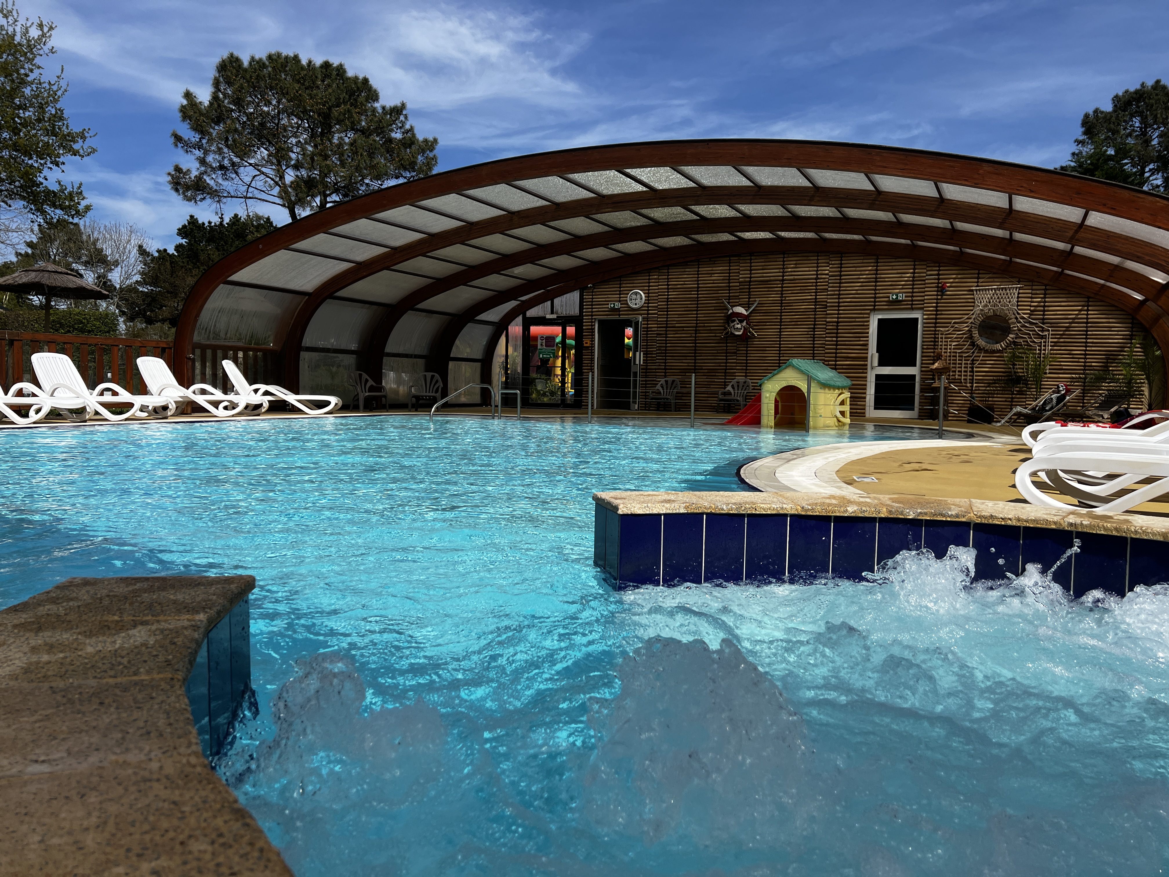 Wij bieden u een restaurantservice ter plaatse of om mee te nemen, een kruidenierswinkel/bakkerij, wifi, wasmachine en droogtrommel... Voor uw vrije tijd is er een overdekt zwembad dat het hele seizoen verwarmd wordt tot 28°. In het dennenbos vindt u een tokkelbaan van 25 m, een doolhof, een voetbalveld, een minigolfbaan, twee springkastelen, een trampoline, pingpongtafels... In juli en augustus kunt u genieten van animatie, concerten, karaoke en voor de allerkleinsten onze kinderclub (in juli en augustus), en niet te vergeten onze spa met balneotherapie en sauna, om de volwassenen te verwennen. En dat alles in een piratensfeer...