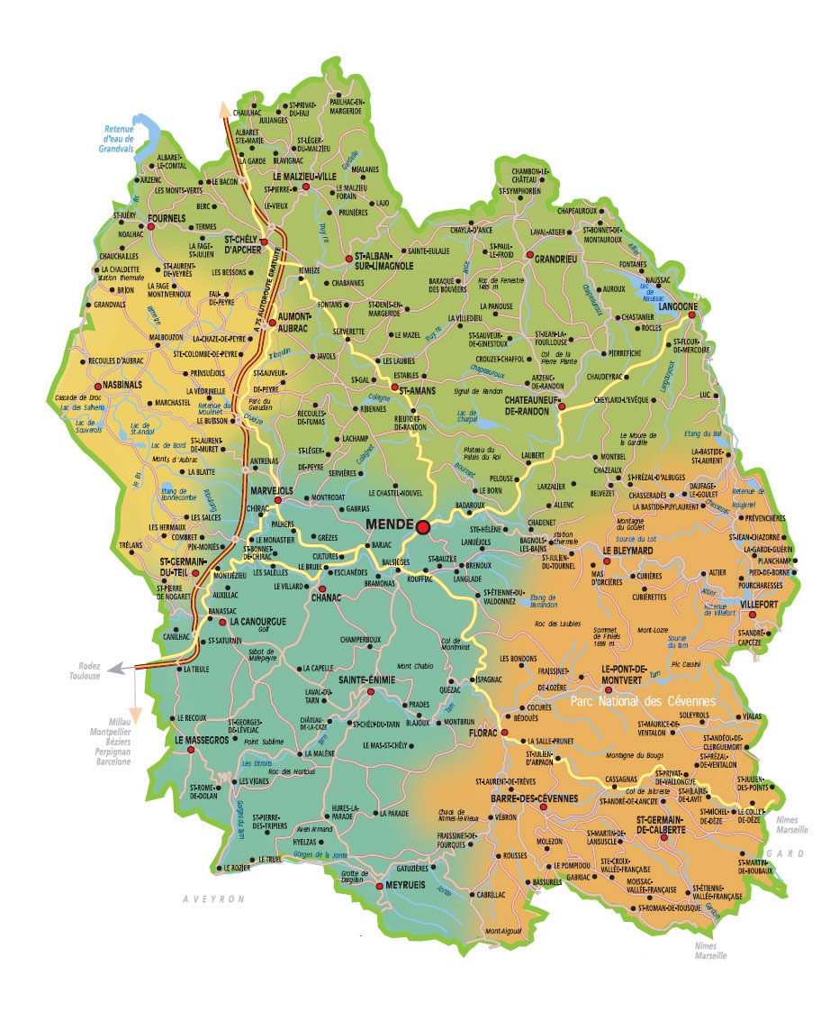 Het plateau van Aubrac, de bossen van Margeride, de Gorges du Tarn en de Cevennen,